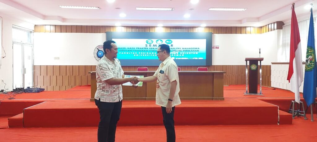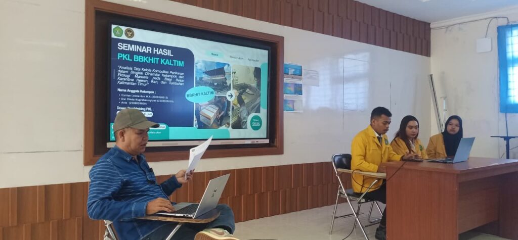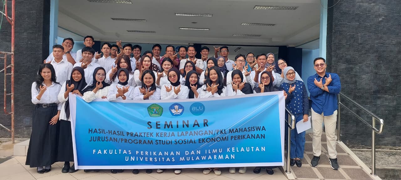Jurusan Sosek Perikanan telah menyelenggarakan kegiatan Seminar Hasil Praktik Kerja Lapangan (PKL) mahasiswa Jurusan Sosial Ekonomi Perikanan pada tanggal 11 April 2026 di ruang Kerapu dan Kakap A lt 1 Gedung Dekanat FPIK UNMUL. Kegiatan di selenggarakan guna sebagai bentuk pemaparan langsung sebagai wujud evaluasi dari hasil kegiatan PKL yang dilakukan oleh mahasiswa Jurusan Sosek Perikanan yang dilaksanakan pada bulan Januari 2026. Kegiatan ini diikuti oleh mahasiswa Jurusan Sosial Ekonomi Perikanan Angkatan 2023 dengan berbagai lokasi PKL seperti di BBI Bontang, PPI Selili, POKDAKAN, Balai Karantina Ikan, UPTD Dinas Perikanan dan lain sebagainya. Kegiatan Seminar Hasil PKL ini dikiuti oleh mahasiswa peserta PKL berjumlah 35 mahasiswa juga dihadiri pula oleh para dosen Jurusan Sosial Ekonomi Perikanan dan Pendamping Lapangan yaitu Bapak Hendrieco Dwintara Teguh Pramuda, S.Pi,M.Pi sebagai Penyuluh Perikanan Dinas Perikanan di Kota Samarinda.